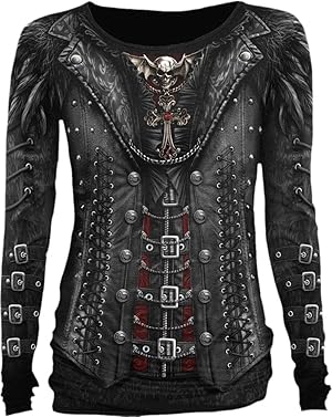 Spiral Gothess Wrap Mujer Camiseta Manga Larga Negro Regular